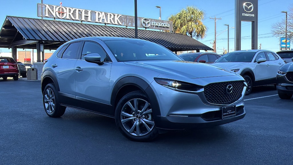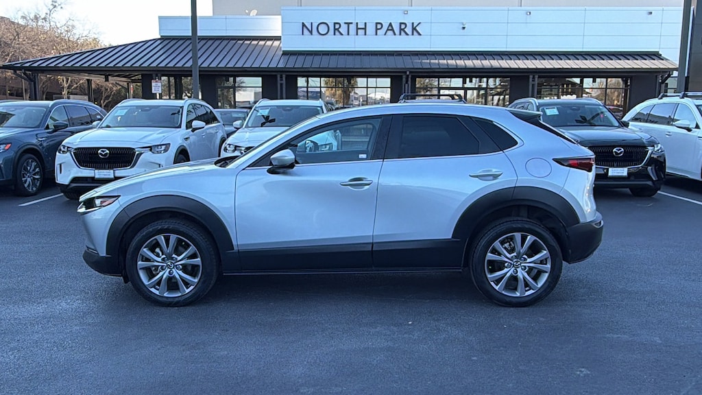 North Park Mazda is delighted to offer this charming 2021 Mazda CX-30 Select. Well equipped with Select Package, 18" x 7J Alloy Wheels, 3.850 Axle Ratio, 4-Wheel Disc Brakes, 8 Speakers, ABS brakes, Air Conditioning, Alloy wheels, AM/FM radio, AppLink/Apple CarPlay and Android Auto, Auto High-beam Headlights, Automatic temperature control, Brake assist, Bumpers: body-color, Compass, Delay-off headlights, Driver door bin, Driver vanity mirror, Dual front impact airbags, Dual front side impact airbags, Electronic Stability Control, Emergency communication system: MAZDA CONNECT, Exterior Parking Camera Rear, Front anti-roll bar, Front Bucket Seats, Front Center Armrest, Front dual zone A/C, Front reading lights, Front wheel independent suspension, Fully automatic headlights, Illuminated entry, Knee airbag, Leather Shift Knob, Leather steering wheel, Leatherette Seat Trim, Low tire pressure warning, MAZDA CONNECT Infotainment System Voice Command, Occupant sensing airbag, Outside temperature display, Overhead airbag, Panic alarm, Passenger door bin, Passenger vanity mirror, Power door mirrors, Power steering, Power windows, Radio data system, Radio: AM/FM Audio System, Rain sensing wipers, Rear seat center armrest, Rear window defroster, Rear window wiper, Remote keyless entry, Speed control, Speed-sensing steering, Split folding rear seat, Spoiler, Steering wheel mounted audio controls, Tachometer, Telescoping steering wheel, Tilt steering wheel, Traction control, Trip computer, Turn signal indicator mirrors, and Variably intermittent wipers.