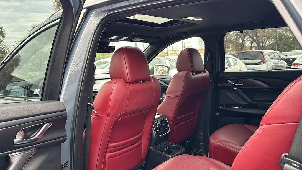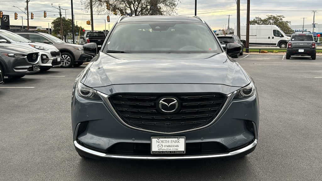 North Park Mazda is honored to offer this great-looking 2023 Mazda CX-9 Carbon Edition. Well equipped with 12 Speakers, 3rd row seats: bench, 4-Wheel Disc Brakes, 4.411 Axle Ratio, ABS brakes, Air Conditioning, Alloy wheels, AM/FM radio: SiriusXM, AppLink/Apple CarPlay and Android Auto, Auto High-beam Headlights, Auto-dimming Rear-View mirror, Automatic temperature control, Black Lug Nuts & Black Wheel Locks, Brake assist, Bumpers: body-color, Compass, Delay-off headlights, Driver door bin, Driver vanity mirror, Dual front impact airbags, Dual front side impact airbags, E911 Automatic Emergency Notification, Electronic Stability Control, Emergency communication system: MAZDA CONNECT, Exterior Parking Camera Rear, Four wheel independent suspension, Front anti-roll bar, Front Bucket Seats, Front Center Armrest, Front dual zone A/C, Front fog lights, Front reading lights, Fully automatic headlights, Garage door transmitter: HomeLink, Heated door mirrors, Heated front seats, Heated rear seats, Heated steering wheel, Heated/Ventilated Front Bucket Seats, Illuminated entry, Infotainment System Voice Command, Leather Seat Trim, Leather Shift Knob, Leather steering wheel, Low tire pressure warning, Mazda Connected Services, Memory seat, Occupant sensing airbag, Outside temperature display, Overhead airbag, Overhead console, Pandora Internet Radio Integration, Panic alarm, Passenger door bin, Passenger vanity mirror, Power door mirrors, Power driver seat, Power Liftgate, Power moonroof, Power passenger seat, Power steering, Power windows, Radio Broadcast Data System Program Information, Radio data system, Radio: AM/FM w/Bose Premium Audio System, Rain sensing wipers, Rear air conditioning, Rear anti-roll bar, Rear reading lights, Rear window defroster, Rear window wiper, Remote keyless entry, SiriusXM Satellite Radio, SMS Text Msg Audio Delivery & Reply, Speed control, Speed-sensing steering, Split folding rear seat, Spoiler, Steering wheel mounted audio controls, Tachometer, Telescoping steering wheel, Tilt steering wheel, Traction control, Trip computer, Turn signal indicator mirrors, Variably intermittent wipers, Ventilated front seats, and Wheels: 20" x 8.5J Aluminum Alloy.