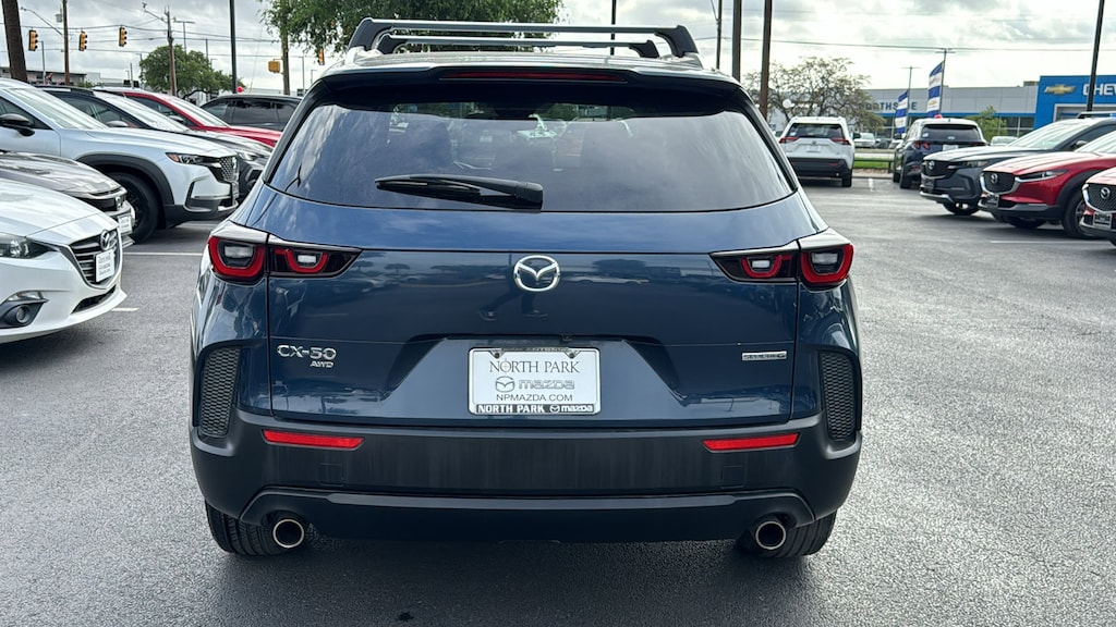North Park Mazda is proud to offer this good-looking 2024 Mazda CX-50 2.5 S Preferred Package. Well equipped with Cargo Package (Cargo Blocks), 4-Wheel Disc Brakes, 4.367 Axle Ratio, 8 Speakers, ABS brakes, Air Conditioning, Alloy wheels, AM/FM radio, AppLink/Apple CarPlay and Android Auto, Auto High-beam Headlights, Automatic temperature control, Brake assist, Bumpers: body-color, Carpet Cargo Mat, Delay-off headlights, Driver door bin, Driver vanity mirror, Dual front impact airbags, Dual front side impact airbags, Electronic Stability Control, Emergency communication system: MAZDA CONNECT, Exterior Parking Camera Rear, Front anti-roll bar, Front Bucket Seats, Front Center Armrest, Front dual zone A/C, Front reading lights, Front wheel independent suspension, Fully automatic headlights, Half Leatherette Seat Trim, Heated door mirrors, Heated Front Bucket Seats, Heated front seats, Illuminated entry, Knee airbag, Leather Shift Knob, Leather steering wheel, Low tire pressure warning, Occupant sensing airbag, Outside temperature display, Overhead airbag, Overhead console, Panic alarm, Passenger door bin, Passenger vanity mirror, Power door mirrors, Power driver seat, Power Liftgate, Power steering, Power windows, Radio data system, Radio: AM/FM/HD Audio System, Rain sensing wipers, Rear seat center armrest, Rear window defroster, Rear window wiper, Remote keyless entry, Silver Cross Bars, Speed control, Speed-sensing steering, Split folding rear seat, Spoiler, Steering wheel mounted audio controls, Tachometer, Telescoping steering wheel, Tilt steering wheel, Traction control, Trip computer, Turn signal indicator mirrors, Variably intermittent wipers, and Wheels: 17" x 7J Aluminum Alloy.