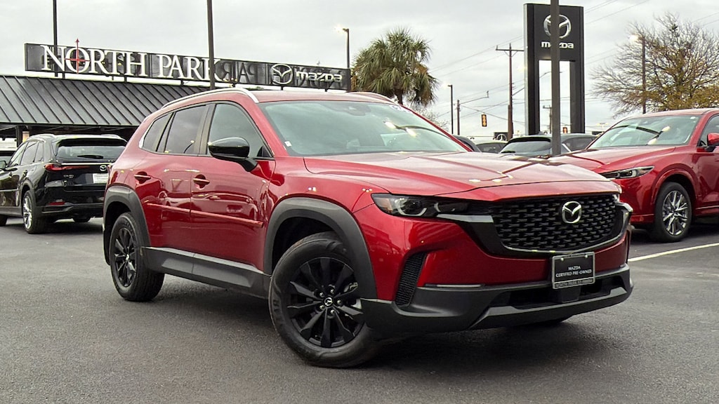 North Park Mazda is pumped up to offer this charming 2024 Mazda CX-50 2.5 S Select Package. Well equipped with 4-Wheel Disc Brakes, 4.367 Axle Ratio, 8 Speakers, ABS brakes, Air Conditioning, Alloy wheels, AM/FM radio, AppLink/Apple CarPlay and Android Auto, Auto High-beam Headlights, Automatic temperature control, Brake assist, Bumpers: body-color, Carpet Cargo Mat, Delay-off headlights, Driver door bin, Driver vanity mirror, Dual front impact airbags, Dual front side impact airbags, Electronic Stability Control, Emergency communication system: MAZDA CONNECT, Exterior Parking Camera Rear, Front & Rear Splash Guards, Front anti-roll bar, Front Bucket Seats, Front Center Armrest, Front dual zone A/C, Front reading lights, Front wheel independent suspension, Fully automatic headlights, Half Leatherette Seat Trim, Illuminated entry, Knee airbag, Leather Shift Knob, Leather steering wheel, Low tire pressure warning, Occupant sensing airbag, Outside temperature display, Overhead airbag, Overhead console, Panic alarm, Passenger door bin, Passenger vanity mirror, Power door mirrors, Power steering, Power windows, Radio data system, Radio: AM/FM/HD Audio System, Rain sensing wipers, Rear seat center armrest, Rear window defroster, Rear window wiper, Remote keyless entry, Retractable Cargo Cover, Soul Red Crystal Metallic Paint Charge, Speed control, Speed-sensing steering, Split folding rear seat, Spoiler, Steering wheel mounted audio controls, Tachometer, Telescoping steering wheel, Tilt steering wheel, Traction control, Trip computer, Turn signal indicator mirrors, Variably intermittent wipers, and Wheels: 17" x 7J Aluminum Alloy.