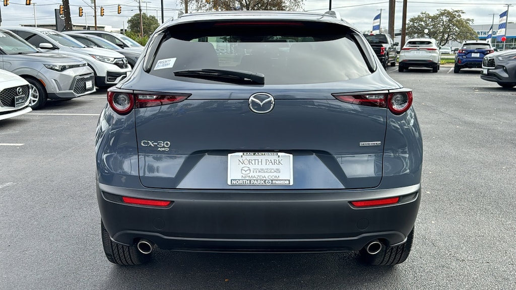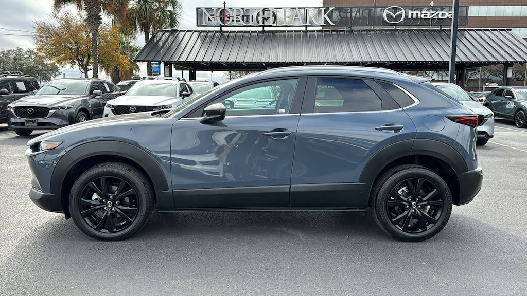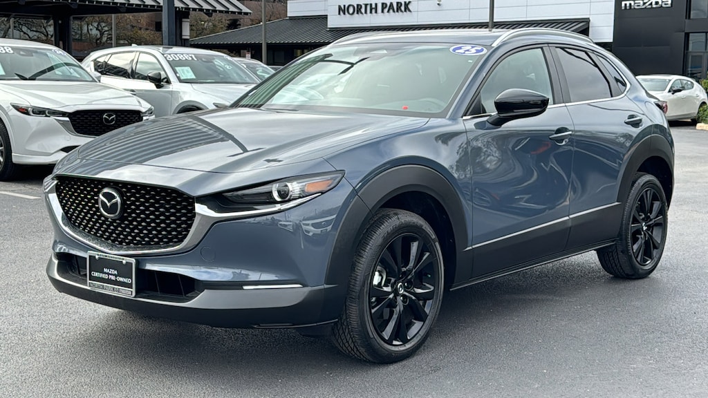 North Park Mazda is proud to offer this superb 2025 Mazda CX-30 2.5 S Carbon Edition. Well equipped with 4-Wheel Disc Brakes, 8 Speakers, ABS brakes, Air Conditioning, Alloy wheels, AM/FM radio, AppLink/Apple CarPlay and Android Auto, Auto High-beam Headlights, Automatic temperature control, Brake assist, Bumpers: body-color, Compass, Delay-off headlights, Driver door bin, Driver vanity mirror, Dual front impact airbags, Dual front side impact airbags, Electronic Stability Control, Emergency communication system: Mazda Connected Services (3-year trial subscription included), Exterior Parking Camera Rear, Front anti-roll bar, Front Bucket Seats, Front Center Armrest, Front dual zone A/C, Front reading lights, Front wheel independent suspension, Fully automatic headlights, Heated door mirrors, Heated Front Bucket Seats, Heated front seats, Illuminated entry, Knee airbag, Leather Seat Trim, Leather Shift Knob, Leather steering wheel, Low tire pressure warning, MAZDA CONNECT Infotainment System, Memory seat, Occupant sensing airbag, Outside temperature display, Overhead airbag, Overhead console, Panic alarm, Passenger door bin, Passenger vanity mirror, Power door mirrors, Power driver seat, Power moonroof, Power steering, Power windows, Radio data system, Radio: AM/FM/HD Audio System, Rain sensing wipers, Rear seat center armrest, Rear side impact airbag, Rear window defroster, Rear window wiper, Remote keyless entry, Speed control, Speed-sensing steering, Split folding rear seat, Spoiler, Steering wheel mounted audio controls, Tachometer, Telescoping steering wheel, Tilt steering wheel, Traction control, Trip computer, Turn signal indicator mirrors, Variably intermittent wipers, and Wheels: 18" x 7J Aluminum Alloy.