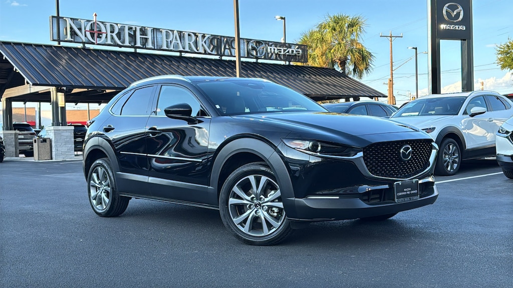 North Park Mazda is delighted to offer this handsome 2025 Mazda CX-30 2.5 S Premium Package. Well equipped with 12 Speakers, 4-Wheel Disc Brakes, ABS brakes, Air Conditioning, Alloy wheels, AM/FM radio: SiriusXM, AppLink/Apple CarPlay and Android Auto, Auto High-beam Headlights, Automatic temperature control, Brake assist, Bumpers: body-color, Compass, Delay-off headlights, Driver door bin, Driver vanity mirror, Dual front impact airbags, Dual front side impact airbags, Electronic Stability Control, Emergency communication system: Mazda Connected Services (3-year trial subscription included), Exterior Parking Camera Rear, Front anti-roll bar, Front Bucket Seats, Front Center Armrest, Front dual zone A/C, Front reading lights, Front wheel independent suspension, Fully automatic headlights, Heads-Up Display, Heated door mirrors, Heated Front Bucket Seats, Heated front seats, Illuminated entry, Knee airbag, Leather Seat Trim, Leather Shift Knob, Leather steering wheel, Low tire pressure warning, MAZDA CONNECT Infotainment System, Memory seat, Navigation system: MAZDA CONNECT, Occupant sensing airbag, Outside temperature display, Overhead airbag, Overhead console, Panic alarm, Passenger door bin, Passenger vanity mirror, Power door mirrors, Power driver seat, Power Liftgate, Power moonroof, Power steering, Power windows, Radio data system, Radio: AM/FM/HD Audio w/Mazda Online Navigation, Rain sensing wipers, Rear seat center armrest, Rear side impact airbag, Rear window defroster, Rear window wiper, Remote keyless entry, Speed control, Speed-sensing steering, Split folding rear seat, Spoiler, Steering wheel mounted audio controls, Tachometer, Telescoping steering wheel, Tilt steering wheel, Traction control, Trip computer, Turn signal indicator mirrors, Variably intermittent wipers, and Wheels: 18" x 7J Aluminum Alloy.