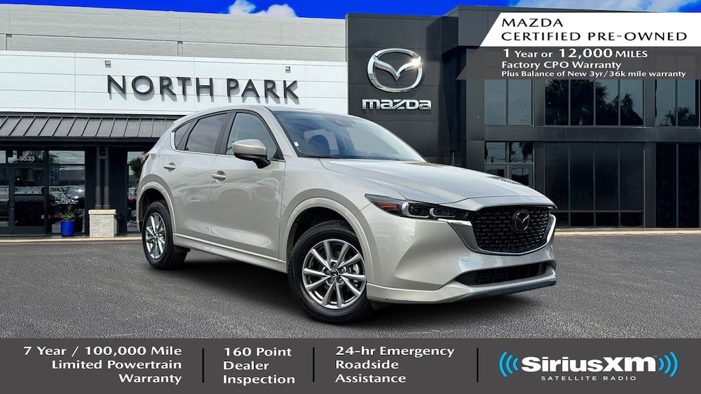 North Park Mazda is proud to offer this handsome-looking 2025 Mazda CX-5 2.5 S Select Package. Well equipped with 4-Wheel Disc Brakes, 6 Speakers, ABS brakes, Air Conditioning, Alloy wheels, AM/FM radio, AppLink/Apple CarPlay and Android Auto, Auto High-beam Headlights, Automatic temperature control, Brake assist, Bumpers: body-color, Delay-off headlights, Driver door bin, Driver vanity mirror, Dual front impact airbags, Dual front side impact airbags, E911 Automatic Emergency Notification, Electronic Stability Control, Emergency communication system: MAZDA CONNECT, Exterior Parking Camera Rear, Four wheel independent suspension, Front anti-roll bar, Front Bucket Seats, Front Center Armrest w/Storage, Front dual zone A/C, Front reading lights, Fully automatic headlights, Heated Front Bucket Seats, Heated front seats, Illuminated entry, Infotainment System Voice Command, Leather Shift Knob, Leather steering wheel, Leatherette Seat Trim, Low tire pressure warning, Multifunction Commander Control, Occupant sensing airbag, Outside temperature display, Overhead airbag, Overhead console, Pandora, Panic alarm, Passenger door bin, Passenger vanity mirror, Power door mirrors, Power driver seat, Power steering, Power windows, Radio Broadcast Data System Program Information, Radio data system, Radio: AM/FM/HD Audio System, Rain sensing wipers, Rear anti-roll bar, Rear reading lights, Rear seat center armrest, Rear window defroster, Rear window wiper, Remote keyless entry, SMS Text Msg Audio Delivery & Reply, Speed control, Speed-sensing steering, Split folding rear seat, Spoiler, Steering wheel mounted audio controls, Tachometer, Telescoping steering wheel, Tilt steering wheel, Traction control, Trip computer, Turn signal indicator mirrors, Variably intermittent wipers, and Wheels: 17" x 7J Aluminum Alloy.
