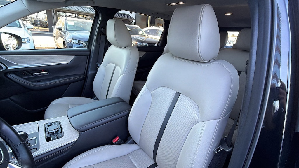 North Park Mazda is pumped up to offer this terrific-looking 2025 Mazda CX-90 3.3 Turbo Preferred. Well equipped with 3rd row seats: bench, 4-Wheel Disc Brakes, 8 Speakers, ABS brakes, Air Conditioning, Alloy wheels, AM/FM radio, Auto High-beam Headlights, Automatic temperature control, Brake assist, Bumpers: body-color, Compass, Delay-off headlights, Driver door bin, Driver vanity mirror, Dual front impact airbags, Dual front side impact airbags, E911 Automatic Emergency Notification, Electronic Stability Control, Emergency communication system: MAZDA CONNECT, Exterior Parking Camera Rear, Four wheel independent suspension, Front anti-roll bar, Front Bucket Seats, Front Center Armrest w/Storage, Front dual zone A/C, Front reading lights, Fully automatic headlights, Heated door mirrors, Heated Front Bucket Seats, Heated front seats, Illuminated entry, Infotainment System Voice Command, Knee airbag, Leather Seat Trim, Leather Shift Knob, Leather steering wheel, Low tire pressure warning, Mazda Connected Services, Occupant sensing airbag, Outside temperature display, Overhead airbag, Overhead console, Pandora Internet Radio Integration, Panic alarm, Passenger door bin, Passenger vanity mirror, Power door mirrors, Power driver seat, Power Liftgate, Power moonroof, Power passenger seat, Power steering, Power windows, Radio Broadcast Data System Program Information, Radio data system, Radio: AM/FM w/HD/8-Speaker Sound System, Rain sensing wipers, Rear air conditioning, Rear anti-roll bar, Rear reading lights, Rear seat center armrest, Rear window defroster, Rear window wiper, Remote keyless entry, SMS Text Msg Audio Delivery & Reply, Speed control, Speed-sensing steering, Split folding rear seat, Spoiler, Steering wheel mounted audio controls, Tachometer, Telescoping steering wheel, Tilt steering wheel, Traction control, Trip computer, Turn signal indicator mirrors, Variably intermittent wipers, and Wheels: 19" x 8.5J Aluminum Alloy.