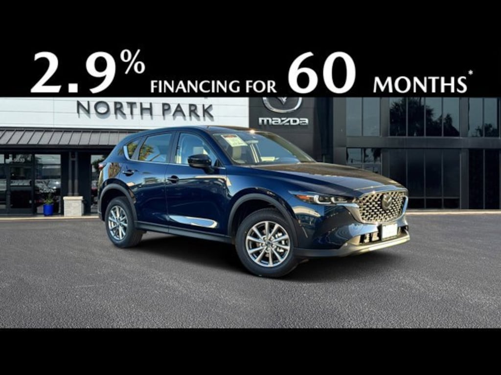 2.9% Annual Percentage Rate (APR) available on approved credit only for very well-qualified customers when financing a new 2025 MAZDA CX-5 through Mazda Financial Services at participating Mazda Dealers. 2.5 S, Select, Preferred, Carbon Edition and Premium Plus trims ONLY. Not all customers will qualify for credit approval or advertised APR. Amount of down payment and other factors may affect qualification. Finance rate is in lieu of customer cash. Dealer contribution may vary and could affect purchase price and amount to be financed. 60 months at $17.92 per month per $1000 financed with $0 down at participating Mazda Dealers. Tax, title, license, other options, loan origination fees and dealer fees may apply. Void where prohibited. This offer is only available on participating Mazda Dealer?s current inventory, which is subject to availability. Offer ends 12/1/2025 and you must take delivery prior to expiration of offer.