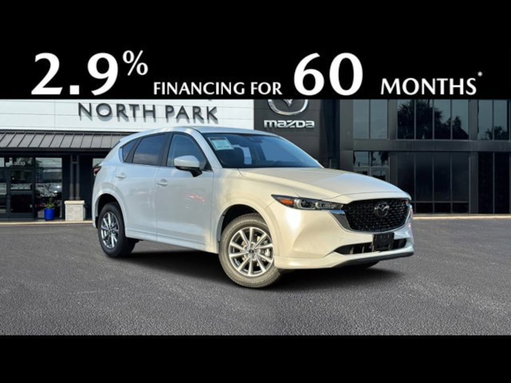 2.9% Annual Percentage Rate (APR) available on approved credit only for very well-qualified customers when financing a new 2025 MAZDA CX-5 through Mazda Financial Services at participating Mazda Dealers. 2.5 S, Select, Preferred, Carbon Edition and Premium Plus trims ONLY. Not all customers will qualify for credit approval or advertised APR. Amount of down payment and other factors may affect qualification. Finance rate is in lieu of customer cash. Dealer contribution may vary and could affect purchase price and amount to be financed. 60 months at $17.92 per month per $1000 financed with $0 down at participating Mazda Dealers. Tax, title, license, other options, loan origination fees and dealer fees may apply. Void where prohibited. This offer is only available on participating Mazda Dealer?s current inventory, which is subject to availability. Offer ends 1/5/2026 and you must take delivery prior to expiration of offer.