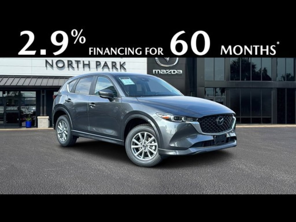 2.9% Annual Percentage Rate (APR) available on approved credit only for very well-qualified customers when financing a new 2025 MAZDA CX-5 through Mazda Financial Services at participating Mazda Dealers. 2.5 S, Select, Preferred, Carbon Edition and Premium Plus trims ONLY. Not all customers will qualify for credit approval or advertised APR. Amount of down payment and other factors may affect qualification. Finance rate is in lieu of customer cash. Dealer contribution may vary and could affect purchase price and amount to be financed. 60 months at $17.92 per month per $1000 financed with $0 down at participating Mazda Dealers. Tax, title, license, other options, loan origination fees and dealer fees may apply. Void where prohibited. This offer is only available on participating Mazda Dealer?s current inventory, which is subject to availability. Offer ends 1/5/2026 and you must take delivery prior to expiration of offer.