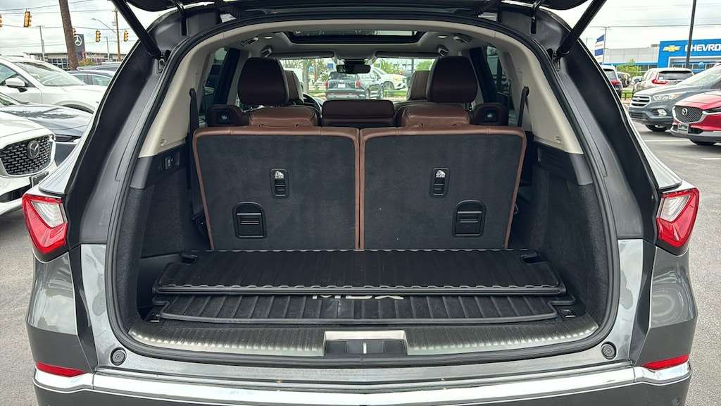 North Park Mazda is proud to offer this good-looking 2023 Acura MDX Advance. Well equipped with 16 Speakers, 3rd row seats: split-bench, 4-Wheel Disc Brakes, 4.17 Axle Ratio, A/V remote: CabinControl, ABS brakes, Adaptive suspension, Air Conditioning, Alloy wheels, AM/FM radio: SiriusXM, Anti-whiplash front head restraints, Apple CarPlay/Android Auto, Audio memory, Auto High-beam Headlights, Auto tilt-away steering wheel, Auto-dimming Rear-View mirror, Automatic temperature control, Brake assist, Bumpers: body-color, Compass, Delay-off headlights, Driver door bin, Driver vanity mirror, Dual front impact airbags, Dual front side impact airbags, Electronic Stability Control, Emergency communication system: AcuraLink, Four wheel independent suspension, Front anti-roll bar, Front Bucket Seats, Front Center Armrest, Front dual zone A/C, Front fog lights, Front reading lights, Fully automatic headlights, Garage door transmitter: HomeLink, Heads-Up Display, Heated & Ventilated Front Sport Seats, Heated door mirrors, Heated front seats, Heated rear seats, Heated steering wheel, HVAC memory, Illuminated entry, Knee airbag, Lane departure: Lane Keeping Assist System (LKAS) active, Leather steering wheel, Low tire pressure warning, Memory seat, Navigation system: Acura Navigation System with 3D View, Occupant sensing airbag, Outside temperature display, Overhead airbag, Overhead console, Panic alarm, Passenger door bin, Passenger vanity mirror, Perforated Premium Milano Leather Trimmed Seats, Power door mirrors, Power driver seat, Power Liftgate, Power moonroof, Power passenger seat, Power steering, Power windows, Premium audio system: Acura/ELS Studio 3D, Radio data system, Radio: ELS Studio 3D Premium Audio System, Rain sensing wipers, Rear air conditioning, Rear anti-roll bar, Rear reading lights, Rear seat center armrest, Rear window defroster, Rear window wiper, Remote keyless entry, Security system, Speed control, Speed-sensing steering, Speed-Sensitive Wipers, Split folding rear seat, Spoiler, Steering wheel memory, Steering wheel mounted audio controls, Tachometer, Telescoping steering wheel, Tilt steering wheel, Traction control, Trip computer, Turn signal indicator mirrors, Variably intermittent wipers, Ventilated front seats, and Wheels: 20" x 9" Aluminum Alloy.