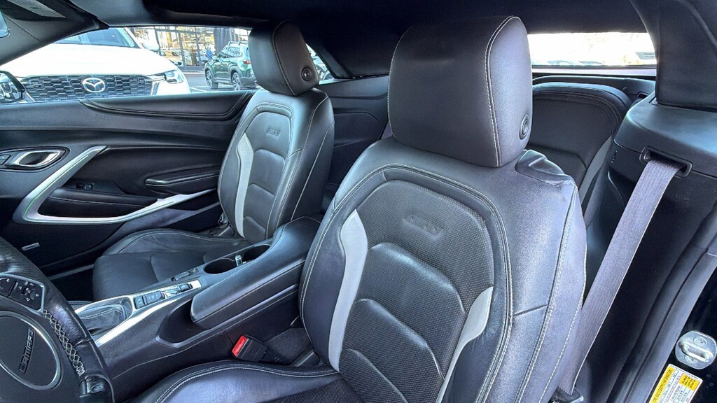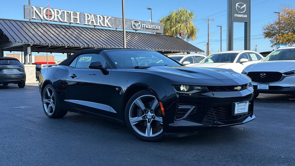 North Park Mazda is pleased to offer this beautiful 2016 Chevrolet Camaro SS. Well equipped with Memory Package, Preferred Equipment Group 2SS (Auto-Dimming Inside Rearview Frameless Mirror, Body-Color Outside Heated Power-Adjustable Mirrors, Bose Premium 7-Speaker Audio System Feature, Dual-Zone Automatic Climate Control, Head-Up Display, Heated Driver & Front Passenger Seats, Heated Steering Wheel, Illuminated Sill Plates, Interior Spectrum Lighting, Rear Cross-Traffic Alert, Rear Park Assist, Side Blind Zone Alert w/Lane Change Alert, Universal Home Remote, Ventilated Driver & Front Passenger Seats, and Wireless Charging For Devices), 2.77 Rear Axle Ratio, 4-Wheel Disc Brakes, 7 Speakers, ABS brakes, Air Conditioning, Alloy wheels, AM/FM radio: SiriusXM, Apple CarPlay, Auto-dimming door mirrors, Auto-dimming Rear-View mirror, Automatic temperature control, Brake assist, Bumpers: body-color, Cargo Net, Compass, Convertible roof lining, Delay-off headlights, Driver door bin, Driver vanity mirror, Dual front impact airbags, Dual front side impact airbags, Dual Mode Performance Exhaust, Electronic Stability Control, Emergency communication system, Exterior Parking Camera Rear, Four wheel independent suspension, Front anti-roll bar, Front Bucket Seats, Front Center Armrest, Front dual zone A/C, Front fog lights, Front License Plate Bracket, Front reading lights, Front Sport Bucket Seats, Fully automatic headlights, Garage door transmitter, Glass rear window, Heads-Up Display, Heated door mirrors, Heated front seats, Heated steering wheel, High-Intensity Discharge Headlights, Illuminated entry, Knee airbag, Leather Shift Knob, Leather-Trimmed Seat Trim, Low tire pressure warning, Memory seat, Occupant sensing airbag, Outside temperature display, Paddle-Shift Manual Controls, Panic alarm, Passenger door bin, Passenger vanity mirror, Power convertible roof, Power door mirrors, Power driver seat, Power passenger seat, Power steering, Power windows, Premium audio system: Chevrolet MyLink, Radio data system, Radio: Chevrolet MyLink Audio System, Radio: Chevrolet MyLink w/Navigation, Rear anti-roll bar, Rear Parking Sensors, Rear window defroster, Remote keyless entry, Remote Vehicle Starter System, Security system, SiriusXM Satellite Radio, Speed control, Speed-sensing steering, Spoiler, Steering wheel mounted audio controls, Tachometer, Telescoping steering wheel, Tilt steering wheel, Traction control, Transmission Oil Cooler, Trip computer, Variably intermittent wipers, Ventilated front seats, Voltmeter, and Wheels: 20" x 8.5" Fr & 20" x 9.5" Rr 5-Spoke Alum.