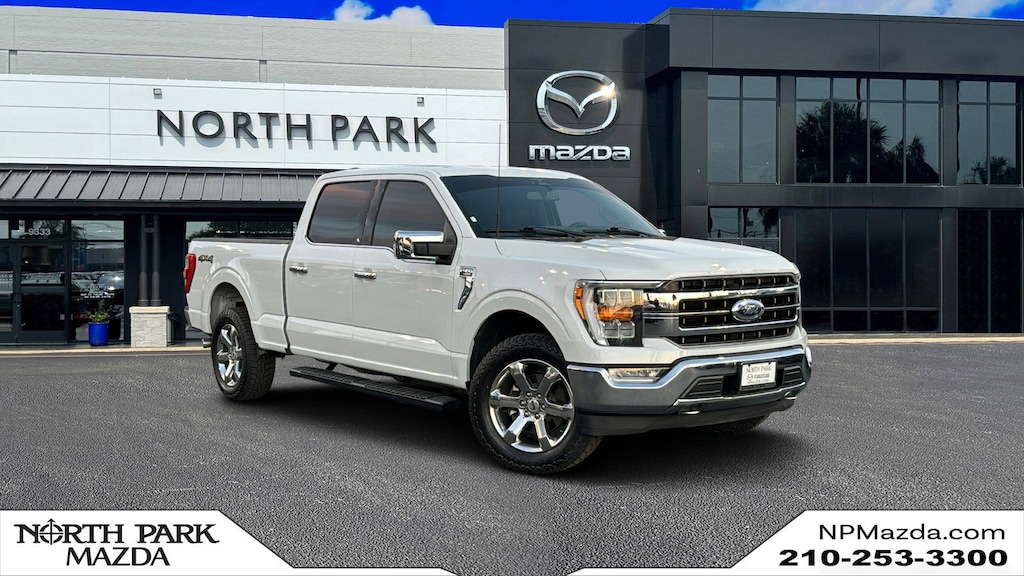 North Park Mazda is very proud to offer this outstanding-looking 2023 Ford F-150 Lariat. Well equipped with Equipment Group 501A Standard, 4-Wheel Disc Brakes, 8 Speakers, ABS brakes, Adjustable pedals, Air Conditioning, Alloy wheels, AM/FM radio: SiriusXM with 360L, Auto High-beam Headlights, Auto Start-Stop Removal (DISC), Auto-dimming door mirrors, Auto-dimming Rear-View mirror, Automatic temperature control, Brake assist, Bumpers: chrome, Chrome wheels, Class IV Trailer Hitch Receiver, Compass, Delay-off headlights, Driver door bin, Driver vanity mirror, Dual front impact airbags, Dual front side impact airbags, Electronic Stability Control, Emergency communication system: SYNC 4 911 Assist, Exterior Parking Camera Rear, Front anti-roll bar, Front Bucket Seats, Front Center Armrest, Front dual zone A/C, Front fog lights, Front reading lights, Front wheel independent suspension, Fully automatic headlights, Garage door transmitter, Heated door mirrors, Heated front seats, Heated steering wheel, Illuminated entry, Inclination/Intrusion Sensor Removal, Integrated Trailer Brake Controller, Leather-Trimmed Bucket Seats, LED Sideview Mirror Spotlights, Low tire pressure warning, Memory seat, Occupant sensing airbag, Outside temperature display, Overhead airbag, Overhead console, Panic alarm, Passenger door bin, Passenger vanity mirror, Pedal memory, Power door mirrors, Power driver seat, Power passenger seat, Power steering, Power windows, Radio data system, Radio: B&O Sound System by Bang & Olufsen, Rear reading lights, Rear seat center armrest, Rear step bumper, Rear window defroster, Remote keyless entry, Security system, Speed control, Speed-sensing steering, Split folding rear seat, Steering Wheel Heat Removal (DISC), Steering wheel mounted audio controls, SYNC 4 w/Enhanced Voice Recognition, Tachometer, Telescoping steering wheel, Tilt steering wheel, Traction control, Tray Style Floor Liner (47W), Trip computer, Turn signal indicator mirrors, Variably intermittent wipers, Ventilated front seats, Voltmeter, Wheels: 18" Chrome-Like PVD, and Wheels: 20" Chrome-Like PVD.
