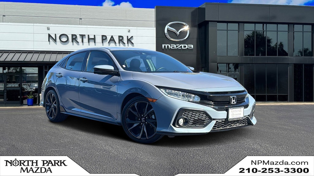 North Park Mazda is excited to offer this good-looking 2019 Honda Civic Sport Touring. Well equipped with 12 Speakers, 4-Wheel Disc Brakes, ABS brakes, Air Conditioning, Alloy wheels, AM/FM radio: SiriusXM, Apple CarPlay/Android Auto, Auto High-beam Headlights, Auto-dimming Rear-View mirror, Automatic temperature control, Brake assist, Bumpers: body-color, Compass, Delay-off headlights, Driver door bin, Driver vanity mirror, Dual front impact airbags, Dual front side impact airbags, Electronic Stability Control, Emergency communication system: HondaLink, Exterior Parking Camera Rear, Forward collision: Collision Mitigation Braking System (CMBS) + FCW mitigation, Four wheel independent suspension, Front anti-roll bar, Front Bucket Seats, Front Center Armrest, Front dual zone A/C, Front fog lights, Front reading lights, Fully automatic headlights, Heated door mirrors, Heated front seats, Heated rear seats, Illuminated entry, Leather Shift Knob, Leather-Trimmed Seating Surfaces, Low tire pressure warning, Navigation System, Occupant sensing airbag, Outside temperature display, Overhead airbag, Panic alarm, Passenger door bin, Passenger vanity mirror, Power door mirrors, Power driver seat, Power moonroof, Power passenger seat, Power steering, Power windows, Radio data system, Radio: 540-Watt HD Premium Audio w/Navigation, Rain sensing wipers, Rear anti-roll bar, Rear seat center armrest, Rear window defroster, Rear window wiper, Reclining Heated Front Bucket Seats, Remote keyless entry, Security system, Speed control, Speed-sensing steering, Speed-Sensitive Wipers, Split folding rear seat, Spoiler, Steering wheel mounted audio controls, Tachometer, Telescoping steering wheel, Tilt steering wheel, Traction control, Trip computer, Turn signal indicator mirrors, and Variably intermittent wipers.