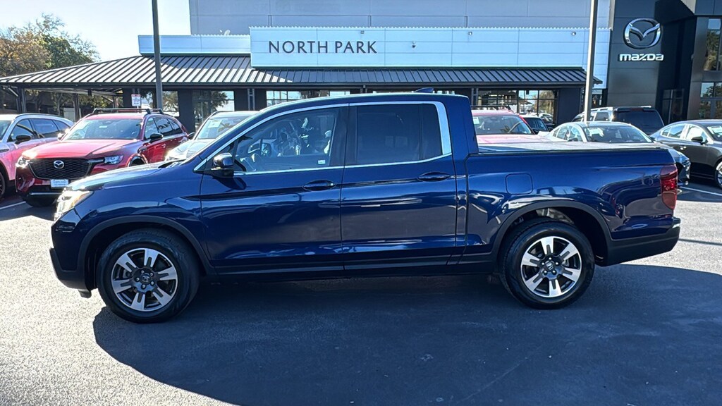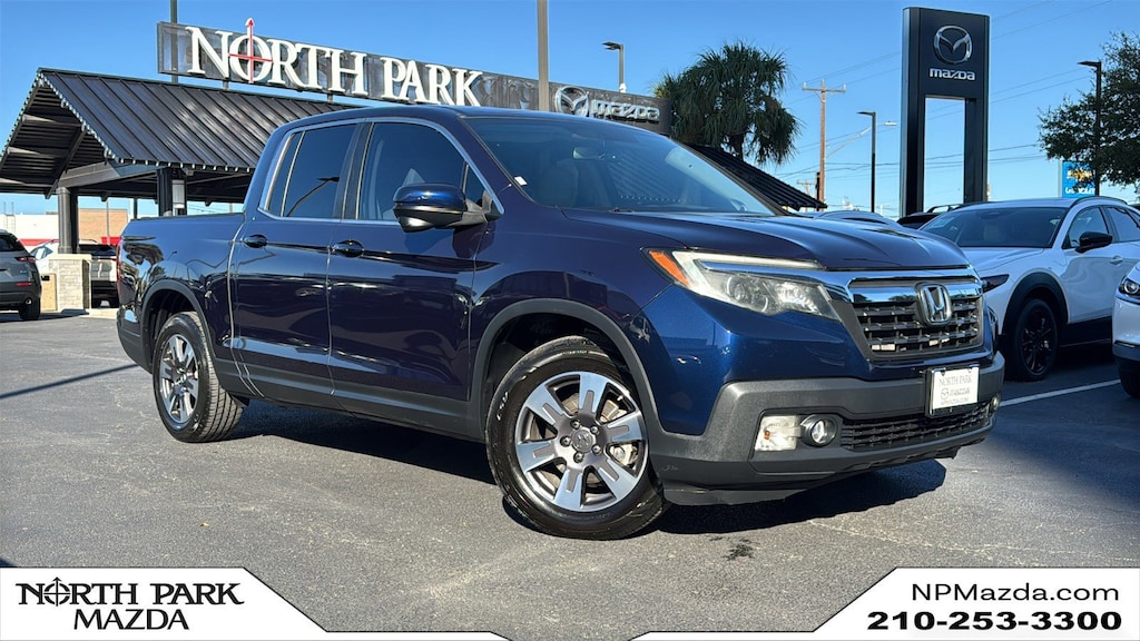 North Park Mazda is excited to offer this wonderful 2019 Honda Ridgeline RTL-T. Well equipped with 4-Wheel Disc Brakes, 4.25 Axle Ratio, 7 Speakers, ABS brakes, Air Conditioning, Alloy wheels, AM/FM radio: SiriusXM, Apple CarPlay/Android Auto, Auto-dimming Rear-View mirror, Automatic temperature control, Bluetooth® Hands-Free Link, Brake assist, Bumpers: body-color, Compass, Delay-off headlights, Driver door bin, Driver vanity mirror, Driver's Seat Mounted Armrest, Dual front impact airbags, Dual front side impact airbags, Electronic Stability Control, Exterior Parking Camera Rear, Four wheel independent suspension, Front anti-roll bar, Front Bucket Seats, Front dual zone A/C, Front fog lights, Front reading lights, Fully automatic headlights, Garage door transmitter: HomeLink, Heated Front Bucket Seats, Heated front seats, Honda Satellite-Linked Navigation System, Illuminated entry, Leather Seat Trim, Low tire pressure warning, Navigation system: Honda Satellite-Linked Navigation System, Occupant sensing airbag, Outside temperature display, Overhead airbag, Overhead console, Panic alarm, Passenger door bin, Passenger seat mounted armrest, Passenger vanity mirror, Power door mirrors, Power driver seat, Power moonroof, Power passenger seat, Power steering, Power windows, Radio data system, Radio: AM/FM/MP3 w/Navigation System, Rear air conditioning, Rear anti-roll bar, Rear reading lights, Rear seat center armrest, Rear step bumper, Rear window defroster, Remote keyless entry, Security system, SiriusXM Radio, Speed control, Speed-sensing steering, Split folding rear seat, Steering wheel mounted audio controls, Tachometer, Telescoping steering wheel, Tilt steering wheel, Traction control, Trip computer, Variably intermittent wipers, and Wheels: 18" Exclusive Machine-Finished Alloy.