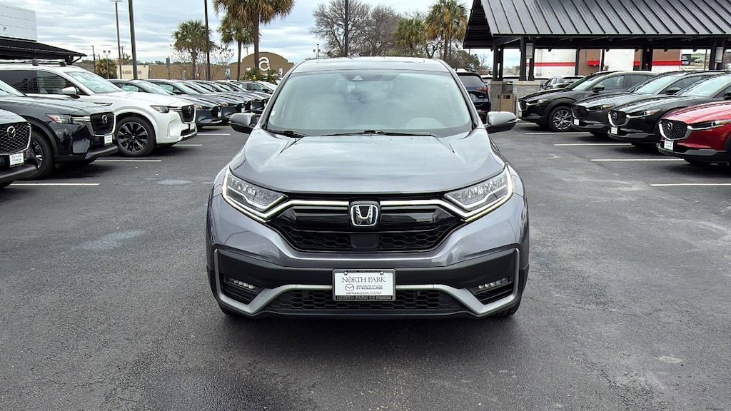 North Park Mazda is honored to offer this superb 2022 Honda CR-V Hybrid EX-L. Well equipped with 18" Alloy Wheels, 3.89 Axle Ratio, 4-Wheel Disc Brakes, 8 Speakers, ABS brakes, Adaptive Cruise Control: Adaptive Cruise Control (ACC) with Low-Speed Follow, Air Conditioning, Alloy wheels, AM/FM radio: SiriusXM, Apple CarPlay/Android Auto, Auto High-beam Headlights, Auto-dimming Rear-View mirror, Automatic temperature control, Blind Spot Information (BSI) System warning, Brake assist, Bumpers: body-color, Compass, Delay-off headlights, Driver door bin, Driver vanity mirror, Dual front impact airbags, Dual front side impact airbags, Electronic Stability Control, Exterior Parking Camera Rear, Forward collision: Collision Mitigation Braking System (CMBS) + FCW mitigation, Four wheel independent suspension, Front anti-roll bar, Front Bucket Seats, Front Center Armrest, Front dual zone A/C, Front fog lights, Front reading lights, Garage door transmitter: HomeLink, Heated door mirrors, Heated Front Bucket Seats, Heated front seats, Heated steering wheel, Illuminated entry, Leather Seat Trim, Low tire pressure warning, Memory seat, Occupant sensing airbag, Outside temperature display, Overhead airbag, Overhead console, Panic alarm, Passenger door bin, Passenger vanity mirror, Power door mirrors, Power driver seat, Power Liftgate, Power moonroof, Power passenger seat, Power steering, Power windows, Radio data system, Radio: 180-Watt AM/FM/HD/SiriusXM Audio System, Rear anti-roll bar, Rear seat center armrest, Rear window defroster, Rear window wiper, Remote keyless entry, Security system, Speed control, Speed-sensing steering, Speed-Sensitive Wipers, Split folding rear seat, Spoiler, Steering wheel mounted audio controls, Telescoping steering wheel, Tilt steering wheel, Traction control, Trip computer, Turn signal indicator mirrors, and Variably intermittent wipers.