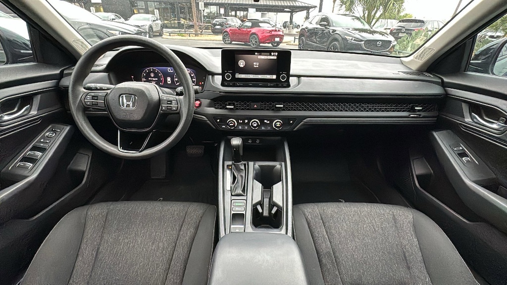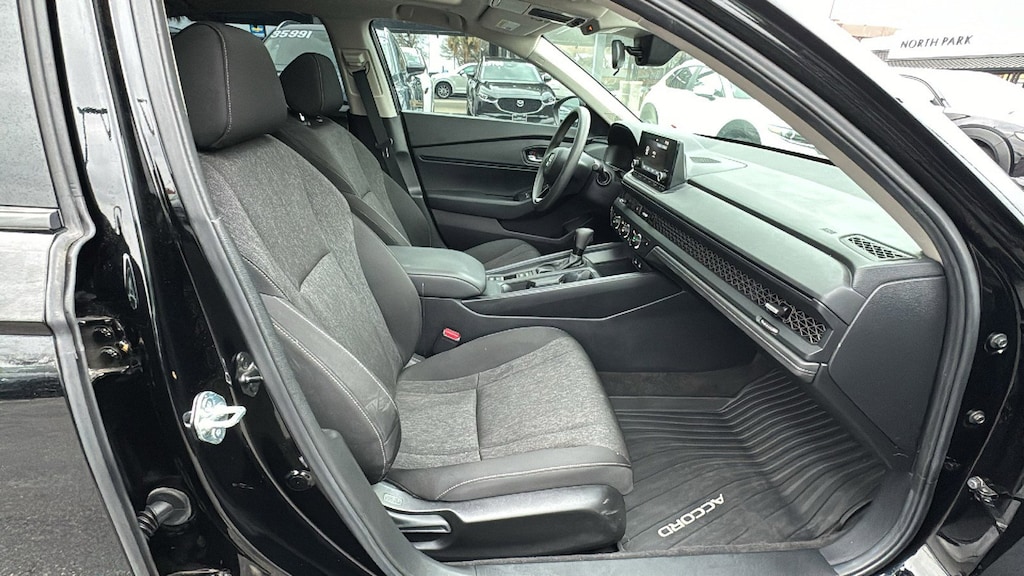 North Park Mazda is delighted to offer this good-looking 2025 Honda Accord SE. Well equipped with 4-Wheel Disc Brakes, 8 Speakers, ABS brakes, Adaptive Cruise Control: Adaptive Cruise Control (ACC) with Low-Speed Follow, Air Conditioning, Alloy wheels, AM/FM radio, Apple CarPlay/Android Auto, Auto High-beam Headlights, Automatic temperature control, Blind Spot Information (BSI) System warning, Brake assist, Bumpers: body-color, Compass, Delay-off headlights, Driver door bin, Driver vanity mirror, Dual front impact airbags, Dual front side impact airbags, Electronic Stability Control, Emergency communication system: HondaLink Assist, Exterior Parking Camera Rear, Fabric Seat Trim, Four wheel independent suspension, Front anti-roll bar, Front Bucket Seats, Front Center Armrest, Front dual zone A/C, Front reading lights, Fully automatic headlights, Heated door mirrors, Heated Front Bucket Seats, Heated front seats, Illuminated entry, Knee airbag, Lane departure: Lane Keeping Assist System (LKAS) active, Low tire pressure warning, Occupant sensing airbag, Outside temperature display, Overhead airbag, Overhead console, Panic alarm, Passenger door bin, Passenger vanity mirror, Power door mirrors, Power driver seat, Power moonroof, Power steering, Power windows, Radio data system, Radio: 180-Watt Audio System, Rear anti-roll bar, Rear reading lights, Rear seat center armrest, Rear side impact airbag, Rear window defroster, Remote keyless entry, Security system, Speed control, Speed-sensing steering, Speed-Sensitive Wipers, Split folding rear seat, Steering wheel mounted audio controls, Tachometer, Telescoping steering wheel, Tilt steering wheel, Traction control, Trip computer, Variably intermittent wipers, and Wheels: 17" x 7.5J Berlina Black.