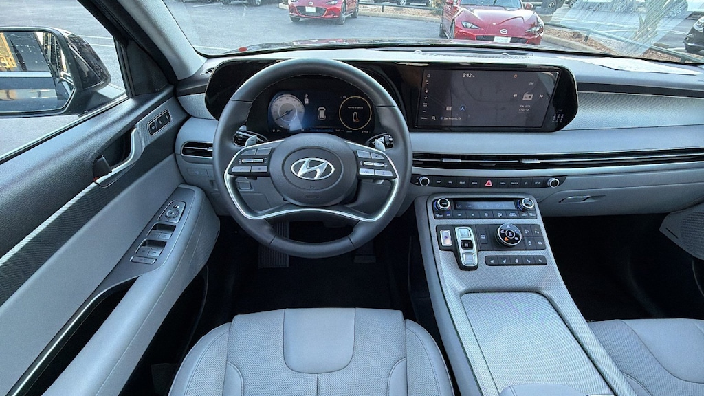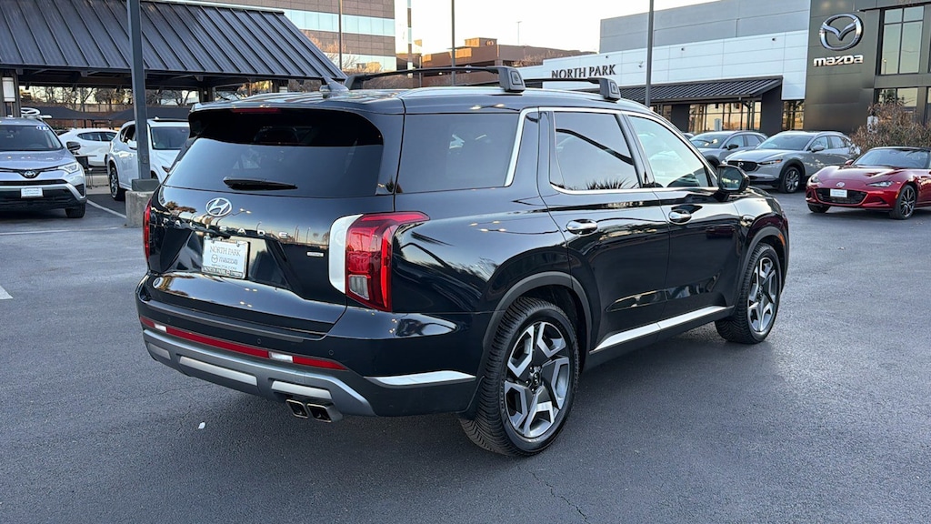 North Park Mazda is honored to offer this superb-looking 2023 Hyundai Palisade SEL. Well equipped with 8-Passenger Bench Seating (115-Volt AC Power Outlet, 12.3" Full-Digital Multi-Information Display, 3rd Row USB Outlets, 8-Passenger Seating, Acoustic Rear Side Glass, Auto Leveling Rear Suspension, Blind-Spot View Monitor, Driver 4-Way Power Lumbar Support, Driver Talk (In-Car Intercom), Forward Collision Avoidance Assist, Front Parking Sensors, harman/kardon® Audio System, Heated 2nd Row Seats, Heated Steering Wheel, Highway Driving Assist II (HDA), Hydro-Phobic Front Side Glass, Integrated Memory Driver Seat & Mirrors, Power Sunroof, Rear Side Window Sunshades, Surround View Monitor, Ventilated Front & 2nd-Row Seats, and Wheels: 20" x 7.5J Alloy), 3.648 Axle Ratio, 3rd row seats: split-bench, 4-Wheel Disc Brakes, 6 Speakers, ABS brakes, Air Conditioning, Alloy wheels, AM/FM radio: SiriusXM, Apple CarPlay & Android Auto, Auto High-beam Headlights, Auto-dimming door mirrors, Auto-dimming Rear-View mirror, Automatic temperature control, Brake assist, Bumpers: body-color, Cargo Cover/Screen, Cargo Net, Cargo Tray, Carpeted Floor Mats, Delay-off headlights, Driver door bin, Driver vanity mirror, Dual front impact airbags, Dual front side impact airbags, Electronic Stability Control, Emergency communication system: Blue Link Connected Car Service (3-year complimentary subscription), Exterior Parking Camera Rear, Four wheel independent suspension, Front anti-roll bar, Front Bucket Seats, Front Center Armrest, Front dual zone A/C, Front reading lights, Fully automatic headlights, Garage door transmitter: HomeLink, H-Tex Leatherette Seat Trim, Heated door mirrors, Heated Front Bucket Seats, Heated front seats, Illuminated entry, Knee airbag, Low tire pressure warning, Navigation System, Occupant sensing airbag, Outside temperature display, Overhead airbag, Overhead console, Panic alarm, Passenger door bin, Passenger vanity mirror, Power door mirrors, Power driver seat, Power Liftgate, Power passenger seat, Power steering, Power windows, Radio data system, Radio: AM/FM/MP3 Audio System, Rear air conditioning, Rear anti-roll bar, Rear audio controls, Rear Bumper Applique, Rear reading lights, Rear side impact airbag, Rear window defroster, Rear window wiper, Reclining 3rd row seat, Remote keyless entry, Security system, Speed control, Speed-sensing steering, Splash Trim, Split folding rear seat, Spoiler, Steering wheel mounted audio controls, Tachometer, Telescoping steering wheel, Tilt steering wheel, Traction control, Trip computer, Turn signal indicator mirrors, Variably intermittent wipers, Wheel Locks, and Wheels: 18" x 7.5J Machine-Faced Alloy.