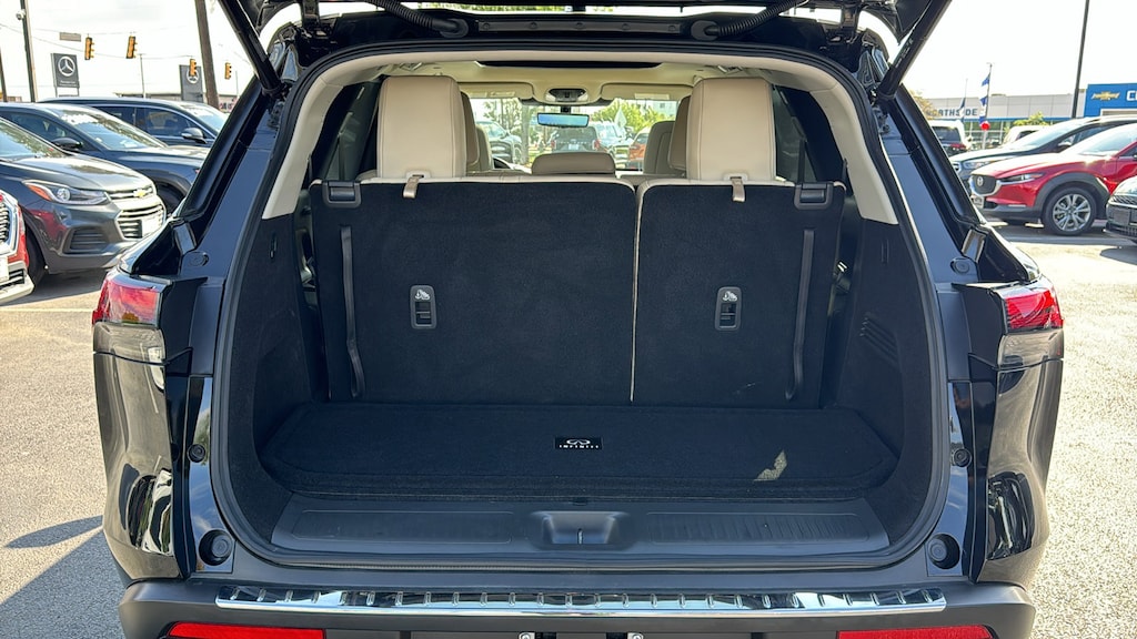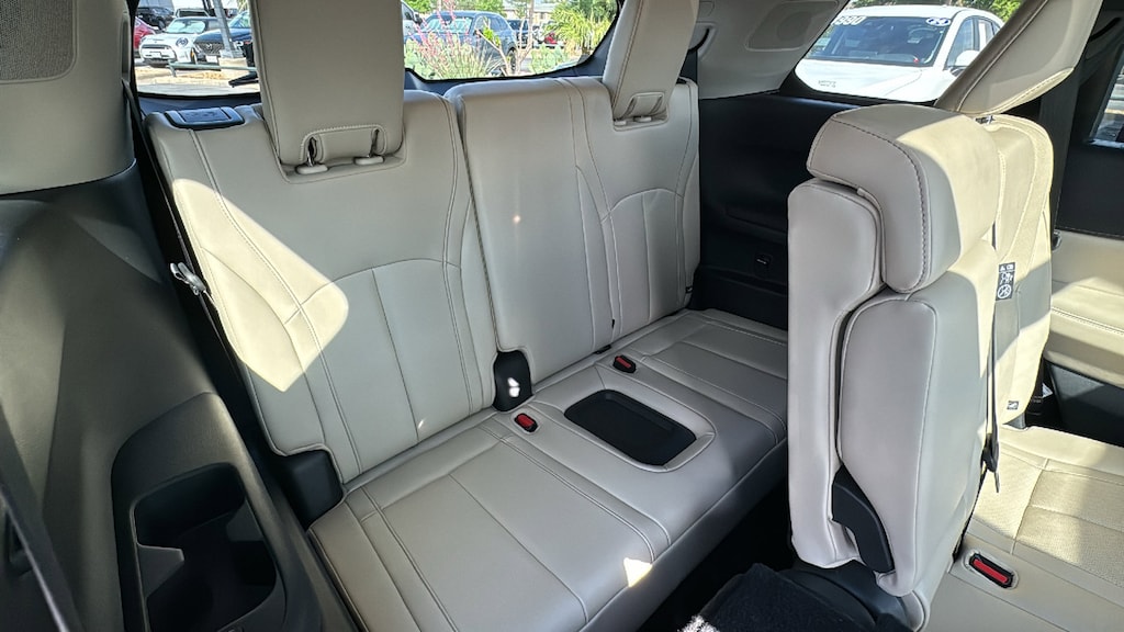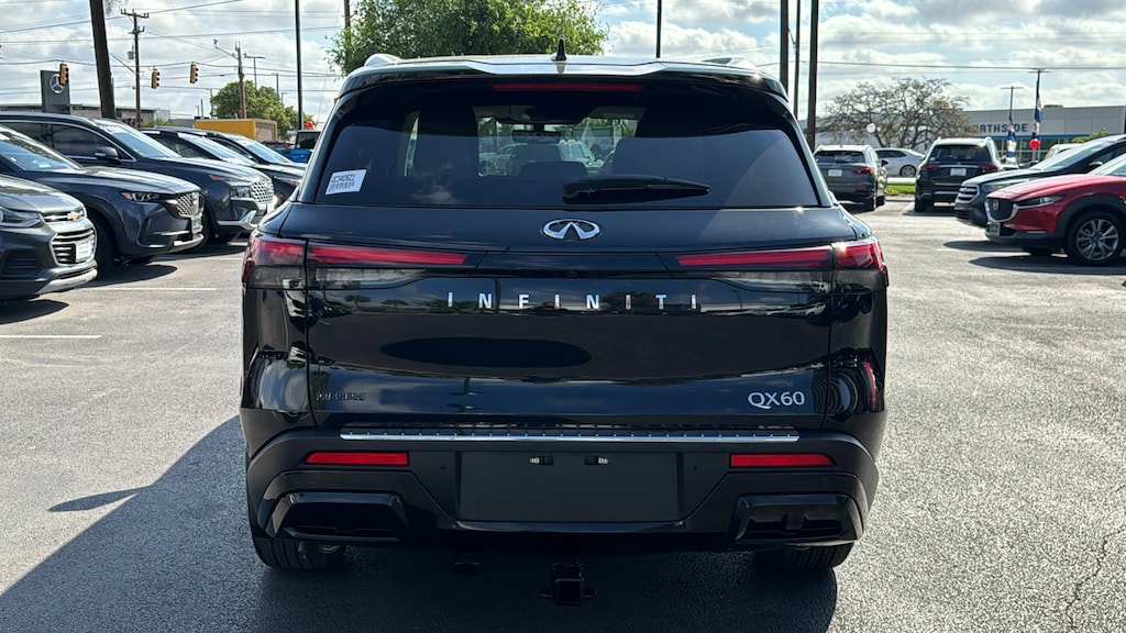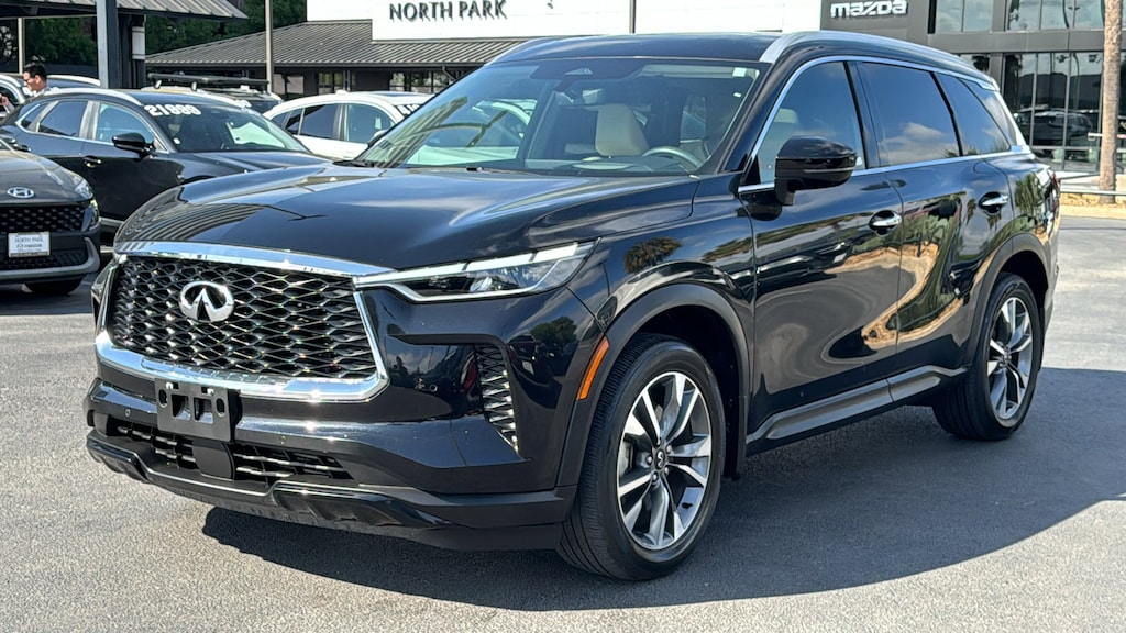 North Park Mazda is pumped up to offer this great-looking 2025 INFINITI QX60 LUXE. Well equipped with Cargo Package (Cargo Mat (Reversible), Cargo Net, and First Aid Kit), Vision Package (10.8" Head-Up Display, Adaptive Front Lighting System, and Smart Rear View Mirror), 17 Speakers, 3rd row seats: bench, 4-Wheel Disc Brakes, ABS brakes, Air Conditioning, Alloy wheels, AM/FM radio: SiriusXM, Anti-whiplash front head restraints, Apple CarPlay/Android Auto, Auto High-beam Headlights, Auto tilt-away steering wheel, Auto-dimming door mirrors, Auto-dimming Rear-View mirror, Automatic temperature control, Bose Performance Series 17-Speaker Sound System, Brake assist, Bumpers: body-color, Climate Controlled Front Bucket Seats, Delay-off headlights, Driver door bin, Driver vanity mirror, Dual front impact airbags, Dual front side impact airbags, Electronic Stability Control, Emergency communication system: INFINITI InTouch, Exterior Parking Camera Rear, Floor Mats w/Bench Seats on 3rd Row Tray, Four wheel independent suspension, Front anti-roll bar, Front Bucket Seats, Front Center Armrest, Front dual zone A/C, Front reading lights, Fully automatic headlights, Garage door transmitter: HomeLink, Heated door mirrors, Heated front seats, Heated rear seats, Heated steering wheel, Illuminated entry, Knee airbag, Leather Shift Knob, Leather steering wheel, Leather-Appointed Seating Surfaces, Literature Kit, Low tire pressure warning, Memory seat, Navigation system: INFINITI InTouch Navigation, Occupant sensing airbag, Outside temperature display, Overhead airbag, Overhead console, Panic alarm, Passenger door bin, Passenger vanity mirror, Power door mirrors, Power driver seat, Power Liftgate, Power moonroof, Power passenger seat, Power steering, Power windows, Premium Paint, Radio data system, Radio: Bose Performance Series, Rain sensing wipers, Rear air conditioning, Rear anti-roll bar, Rear reading lights, Rear seat center armrest, Rear side impact airbag, Rear window defroster, Rear window wiper, Reclining 3rd row seat, Remote keyless entry, Security system, Speed control, Speed-sensing steering, Speed-Sensitive Wipers, Splash Guards, Split folding rear seat, Spoiler, Steering wheel memory, Steering wheel mounted audio controls, Tachometer, Telescoping steering wheel, Tilt steering wheel, Traction control, Trip computer, Turn signal indicator mirrors, Variably intermittent wipers, Ventilated front seats, and Wheels: 20" x 8J Sporty Machined Aluminum Alloy.