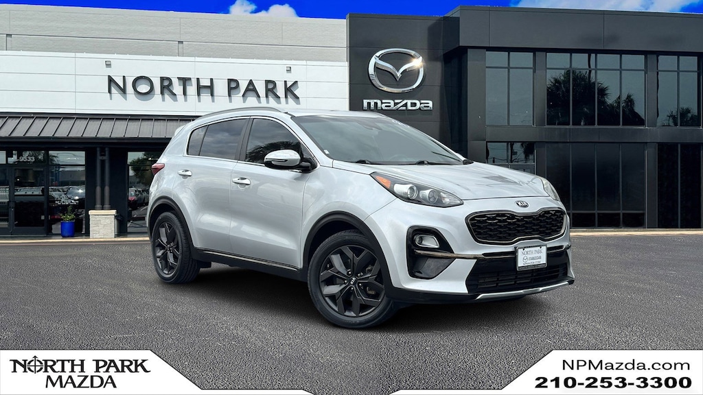 North Park Mazda is excited to offer this beautiful 2021 Kia Sportage S. Well equipped with 4-Wheel Disc Brakes, 6 Speakers, 6-Way Adjustable Driver's Seat, ABS brakes, Air Conditioning, Alloy wheels, AM/FM radio, Apple CarPlay & Android Auto, Auto High-beam Headlights, Axle Ratio: 3.064, Brake assist, Bumpers: body-color, Cargo Cover, Carpet Floor Mats, Delay-off headlights, Driver door bin, Driver vanity mirror, Dual front impact airbags, Dual front side impact airbags, Electronic Stability Control, Exterior Parking Camera Rear, Four wheel independent suspension, Front anti-roll bar, Front Bucket Seats, Front Center Armrest, Front fog lights, Front reading lights, Fully automatic headlights, Heated door mirrors, Illuminated entry, Leather steering wheel, Leatherette Seat Trim, Low tire pressure warning, Occupant sensing airbag, Outside temperature display, Overhead airbag, Overhead console, Panic alarm, Passenger door bin, Passenger vanity mirror, Power door mirrors, Power steering, Power windows, Radio: AM/FM Audio System, Rear anti-roll bar, Rear seat center armrest, Rear window defroster, Rear window wiper, Remote keyless entry, Roof rack: rails only, Security system, Speed control, Speed-sensing steering, Split folding rear seat, Spoiler, Steering wheel mounted audio controls, Tachometer, Telescoping steering wheel, Tilt steering wheel, Traction control, Trip computer, Turn signal indicator mirrors, Variably intermittent wipers, and Wheels: 18" Gray Alloy.