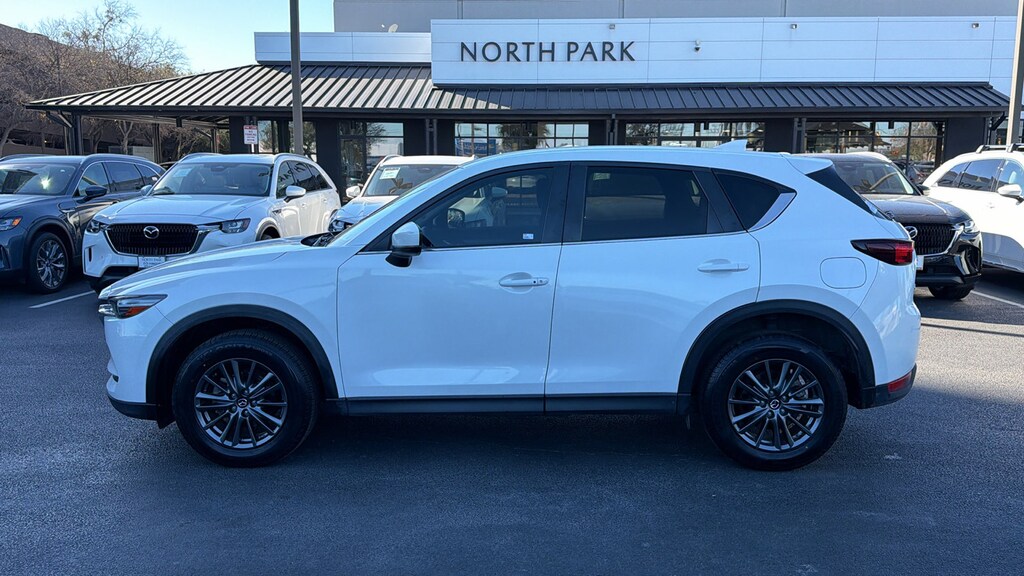 North Park Mazda is excited to offer this good-looking 2021 Mazda CX-5 Touring. Well equipped with 4-Wheel Disc Brakes, 4.325 Axle Ratio, 6 Speakers, ABS brakes, Air Conditioning, Alloy wheels, AM/FM radio, AppLink/Apple CarPlay and Android Auto, Auto High-beam Headlights, Automatic temperature control, Bose 10-Speaker Premium Audio Sound System, Brake assist, Bumpers: body-color, Cargo Mat, Delay-off headlights, Driver door bin, Driver vanity mirror, Dual front impact airbags, Dual front side impact airbags, Electronic Stability Control, Emergency communication system: MAZDA CONNECT, Exterior Parking Camera Rear, Four wheel independent suspension, Front anti-roll bar, Front Bucket Seats, Front Center Armrest, Front dual zone A/C, Front reading lights, Fully automatic headlights, Heated Front Bucket Seats, Heated front seats, Illuminated entry, Leather Seat Trim, Leather Shift Knob, Leatherette Seat Trim, Low tire pressure warning, Occupant sensing airbag, Outside temperature display, Overhead airbag, Overhead console, Panic alarm, Passenger door bin, Passenger vanity mirror, Power door mirrors, Power driver seat, Power steering, Power windows, Radio data system, Radio: AM/FM/HD Audio System, Rain sensing wipers, Rear anti-roll bar, Rear reading lights, Rear seat center armrest, Rear window defroster, Rear window wiper, Remote keyless entry, Snowflake White Pearl Mica Paint, Speed control, Speed-sensing steering, Split folding rear seat, Spoiler, Steering wheel mounted audio controls, Tachometer, Telescoping steering wheel, Tilt steering wheel, Traction control, Trip computer, Turn signal indicator mirrors, Variably intermittent wipers, and Wheels: 17" x 7J Aluminum Alloy.