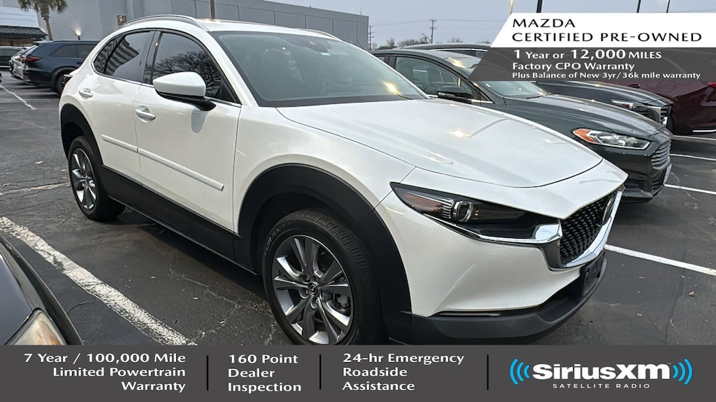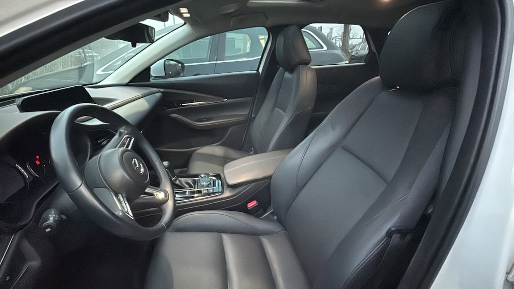 North Park Mazda is pumped up to offer this good-looking 2023 Mazda CX-30 2.5 S Premium Package. Well equipped with 4-Wheel Disc Brakes, 4.095 Axle Ratio, 8 Speakers, ABS brakes, Air Conditioning, Alloy wheels, AppLink/Apple CarPlay and Android Auto, Auto High-beam Headlights, Automatic temperature control, Brake assist, Bumpers: body-color, Compass, Delay-off headlights, Driver door bin, Driver vanity mirror, Dual front impact airbags, Dual front side impact airbags, Electronic Stability Control, Emergency communication system: Mazda Connected Services (3-year complimentary trial included), Exterior Parking Camera Rear, Front anti-roll bar, Front Bucket Seats, Front Center Armrest, Front dual zone A/C, Front reading lights, Front wheel independent suspension, Fully automatic headlights, Heads-Up Display, Heated Front Bucket Seats, Heated front seats, Illuminated entry, Knee airbag, Leather Seat Trim, Leather Shift Knob, Leather steering wheel, Low tire pressure warning, MAZDA CONNECT Infotainment System, Memory seat, Navigation system: MAZDA CONNECT, Occupant sensing airbag, Outside temperature display, Overhead airbag, Overhead console, Panic alarm, Passenger door bin, Passenger vanity mirror, Power door mirrors, Power driver seat, Power Liftgate, Power moonroof, Power steering, Power windows, Radio data system, Radio: AM/FM/HD Audio System w/Mazda Navigation, Rain sensing wipers, Rear seat center armrest, Rear side impact airbag, Rear window defroster, Rear window wiper, Remote keyless entry, Snowflake White Pearl Mica Paint, Speed control, Speed-sensing steering, Split folding rear seat, Spoiler, Steering wheel mounted audio controls, Tachometer, Telescoping steering wheel, Tilt steering wheel, Traction control, Trip computer, Turn signal indicator mirrors, Variably intermittent wipers, and Wheels: 18" x 7J Aluminum Alloy.