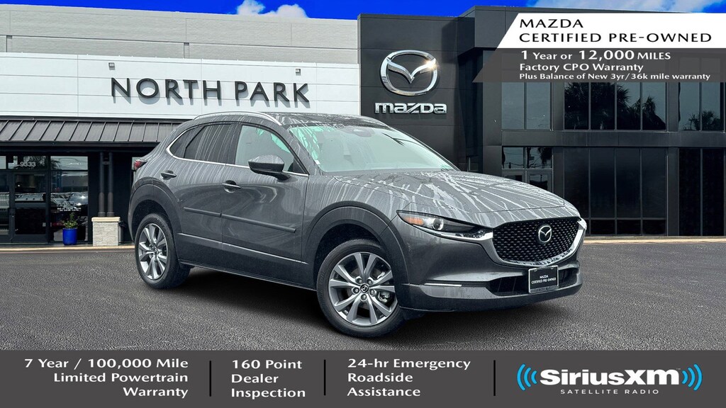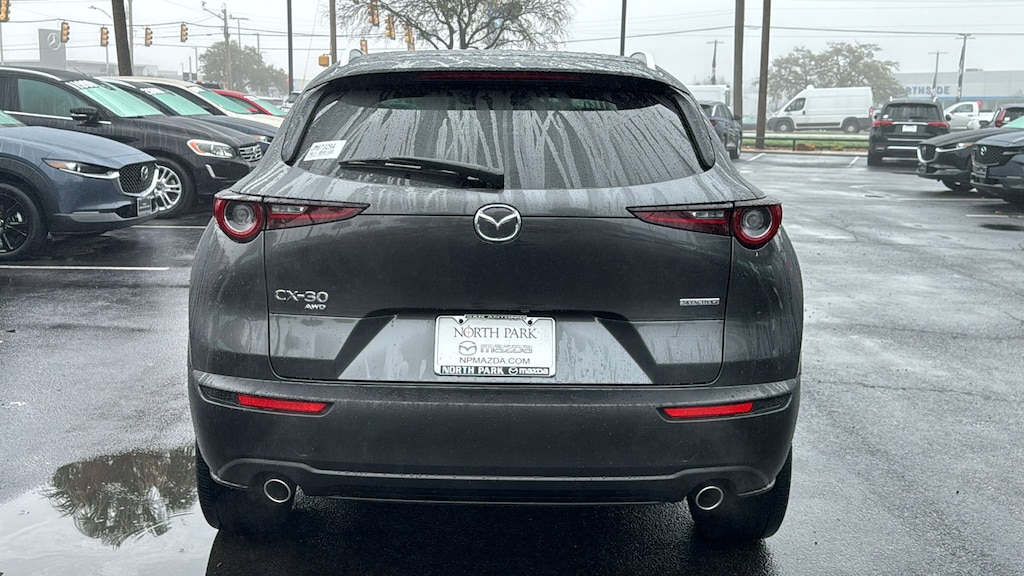 North Park Mazda is very proud to offer this attractive 2024 Mazda CX-30 2.5 S Preferred Package. Well equipped with 4-Wheel Disc Brakes, 4.095 Axle Ratio, 6 Speakers, ABS brakes, Air Conditioning, Alloy wheels, AM/FM radio, AppLink/Apple CarPlay and Android Auto, Auto High-beam Headlights, Automatic temperature control, Brake assist, Bumpers: body-color, Compass, Delay-off headlights, Driver door bin, Driver vanity mirror, Dual front impact airbags, Dual front side impact airbags, Electronic Stability Control, Emergency communication system: Mazda Connected Services (3-year complimentary trial included), Exterior Parking Camera Rear, Front anti-roll bar, Front Bucket Seats, Front Center Armrest, Front dual zone A/C, Front reading lights, Front wheel independent suspension, Fully automatic headlights, Heated door mirrors, Heated Front Bucket Seats, Heated front seats, Illuminated entry, Knee airbag, Leather Shift Knob, Leather steering wheel, Leatherette Seat Trim, Low tire pressure warning, Machine Gray Metallic Paint Charge, MAZDA CONNECT Infotainment System, Memory seat, Occupant sensing airbag, Outside temperature display, Overhead airbag, Overhead console, Panic alarm, Passenger door bin, Passenger vanity mirror, Power door mirrors, Power driver seat, Power moonroof, Power steering, Power windows, Radio data system, Radio: AM/FM Audio System, Rain sensing wipers, Rear seat center armrest, Rear side impact airbag, Rear window defroster, Rear window wiper, Remote keyless entry, Speed control, Speed-sensing steering, Split folding rear seat, Spoiler, Steering wheel mounted audio controls, Tachometer, Telescoping steering wheel, Tilt steering wheel, Traction control, Trip computer, Turn signal indicator mirrors, Variably intermittent wipers, Wheel Locks, and Wheels: 18" x 7J Aluminum Alloy.
