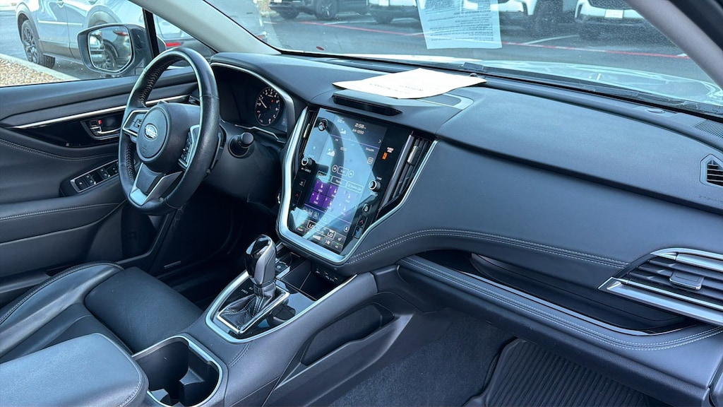 North Park Mazda is honored to offer this stunning-looking 2022 Subaru Outback Limited. Well equipped with Popular Package #2 (All-Weather Floor Liners, Auto-Dimming Exterior Mirror w/Approach Light, Dome Light LED Upgrade, Rear Bumper Cover, Rear Seat Back Protector, and Splash Guards), Power Moonroof & HSW & Navigation System (DriverFocus (Driver Monitoring System), Heated Steering Wheel, Power Moonroof, and Radio: Subaru STARLINK 11.6" Multimedia Nav System), 12 Speakers, 3.90 Axle Ratio, 4-Wheel Disc Brakes, ABS brakes, Air Conditioning, Alloy wheels, AM/FM radio: SiriusXM, Auto High-beam Headlights, Auto-dimming Rear-View mirror, Automatic temperature control, Brake assist, Bumpers: body-color, Compass, Driver door bin, Driver vanity mirror, Dual front impact airbags, Dual front side impact airbags, Electronic Stability Control, Emergency communication system: STARLINK Safety and Security (Subscription Required), Exterior Parking Camera Rear, Four wheel independent suspension, Front anti-roll bar, Front Bucket Seats, Front Center Armrest w/Storage, Front dual zone A/C, Front fog lights, Front reading lights, Fully automatic headlights, Garage door transmitter: HomeLink, harman/kardon® Speakers, Heated door mirrors, Heated Front Bucket Seats, Heated front seats, Heated rear seats, Illuminated entry, Knee airbag, Leather steering wheel, Low tire pressure warning, Memory seat, Occupant sensing airbag, Outside temperature display, Overhead airbag, Overhead console, Panic alarm, Passenger door bin, Passenger vanity mirror, Perforated Leather-Trimmed Upholstery, Power door mirrors, Power driver seat, Power Liftgate, Power passenger seat, Power steering, Power windows, Radio: Subaru STARLINK 11.6" Multimedia Plus Sys, Rear anti-roll bar, Rear seat center armrest, Rear window defroster, Rear window wiper, Remote keyless entry, Roof rack, Security system, Speed control, Speed-sensing steering, Split folding rear seat, Spoiler, STARLINK/Apple CarPlay/Android Auto, Steering wheel mounted audio controls, Steering Wheel Paddle Shift Control Switches, Tachometer, Telescoping steering wheel, Tilt steering wheel, Traction control, Trip computer, Turn signal indicator mirrors, Variably intermittent wipers, and Wheels: 18" x 7J Black Aluminum Alloy.
